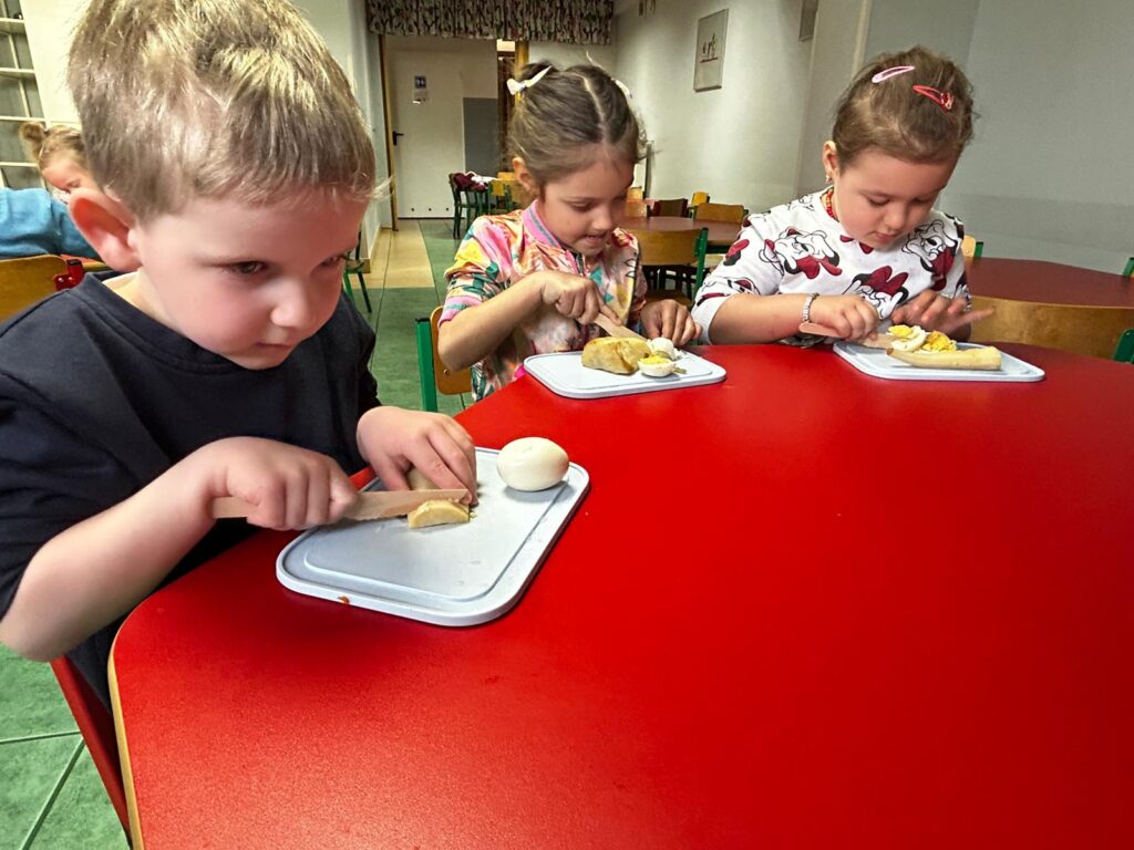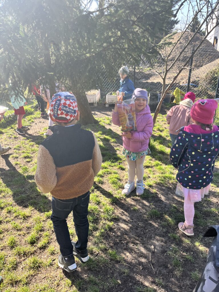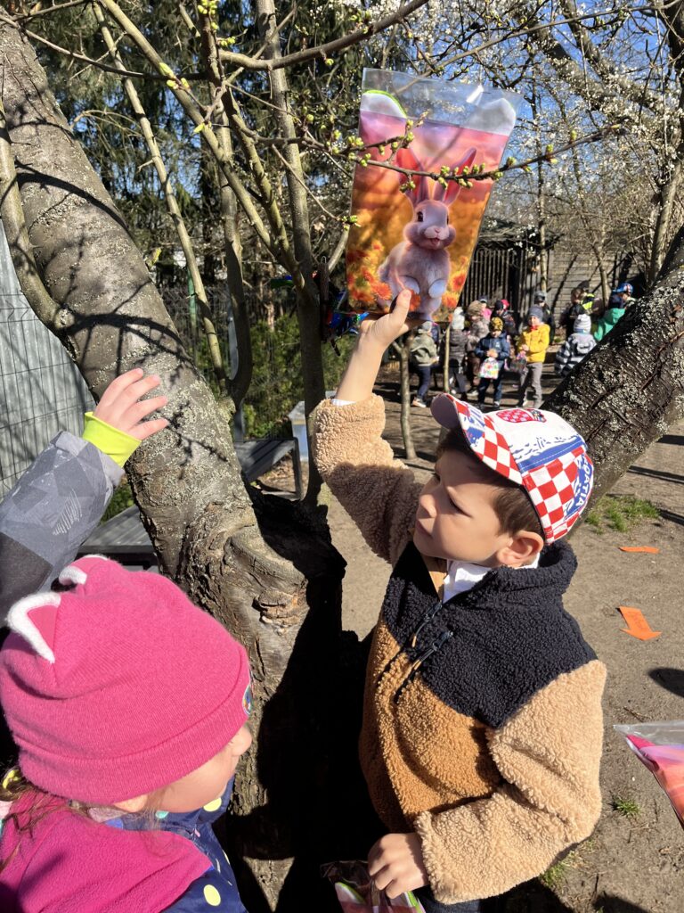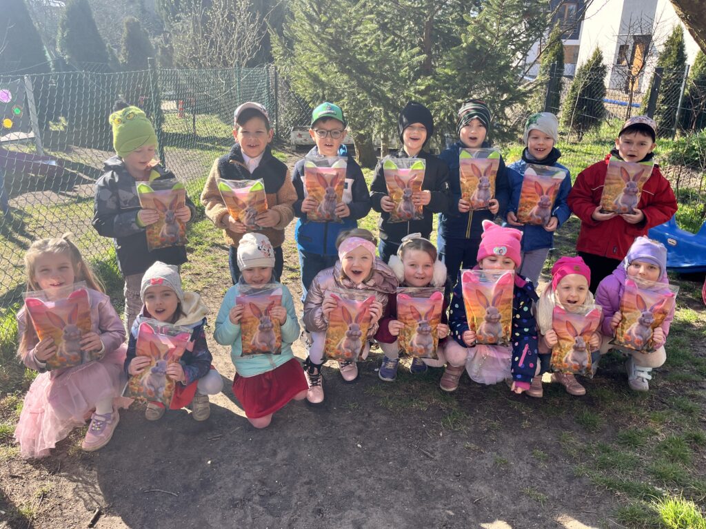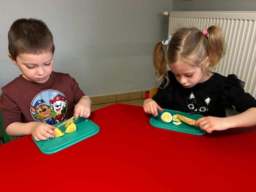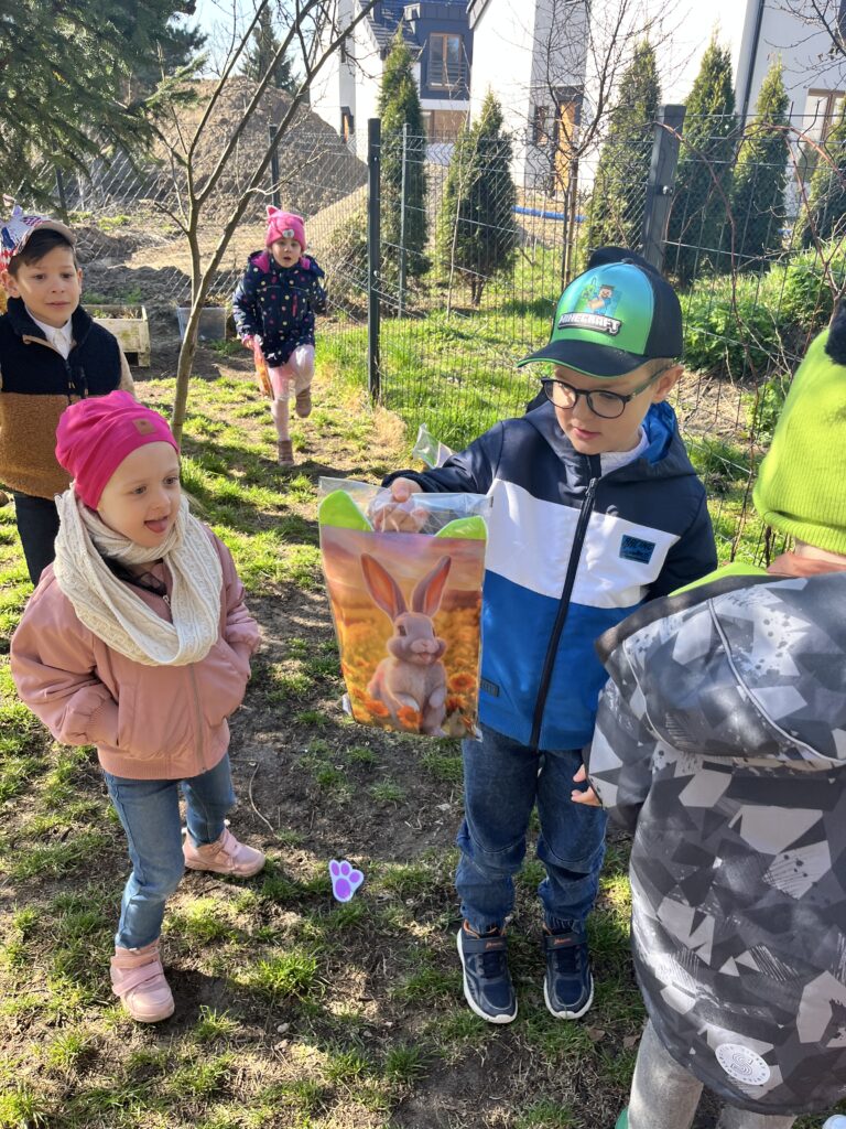 wczoraj przygotowaliśmy warzywa na sałatkę jarzynową, dziś zjedliśmy pyszne śniadanko, a następnie goniliśmy zajączka. Nie udało nam się go złapać, ale zostawił nam piękne prezenty.