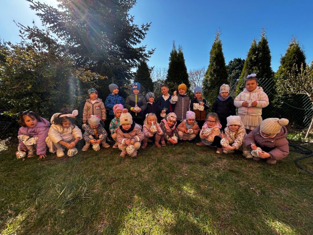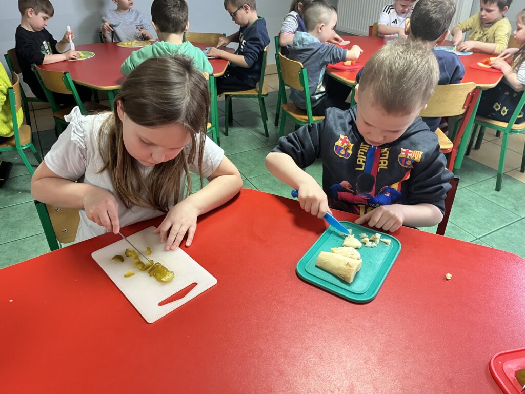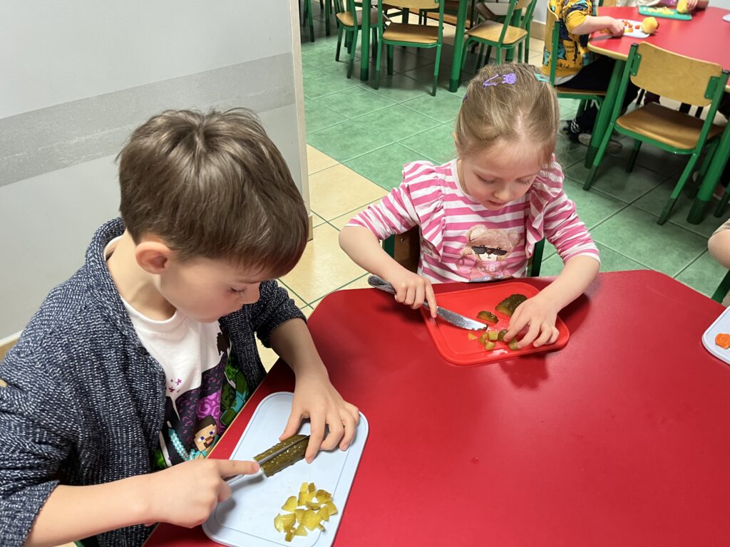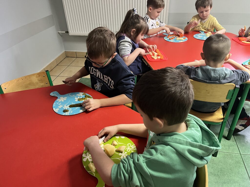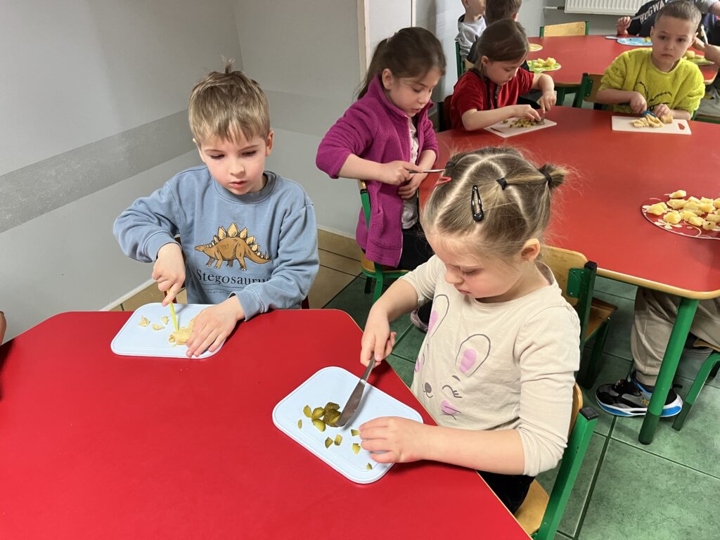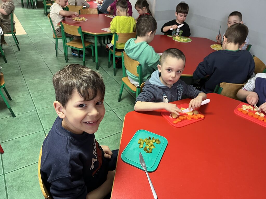 wczoraj przygotowaliśmy warzywa na sałatkę jarzynową, dziś zjedliśmy pyszne śniadanko, a następnie goniliśmy zajączka. Nie udało nam się go złapać, ale zostawił nam piękne prezenty.
