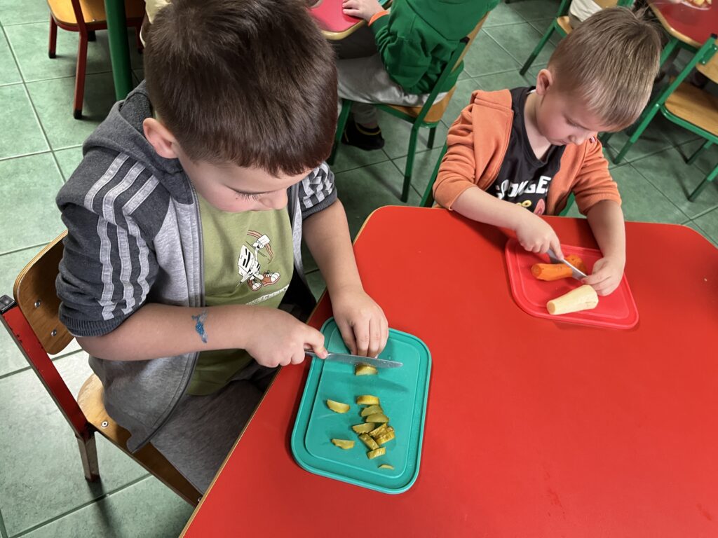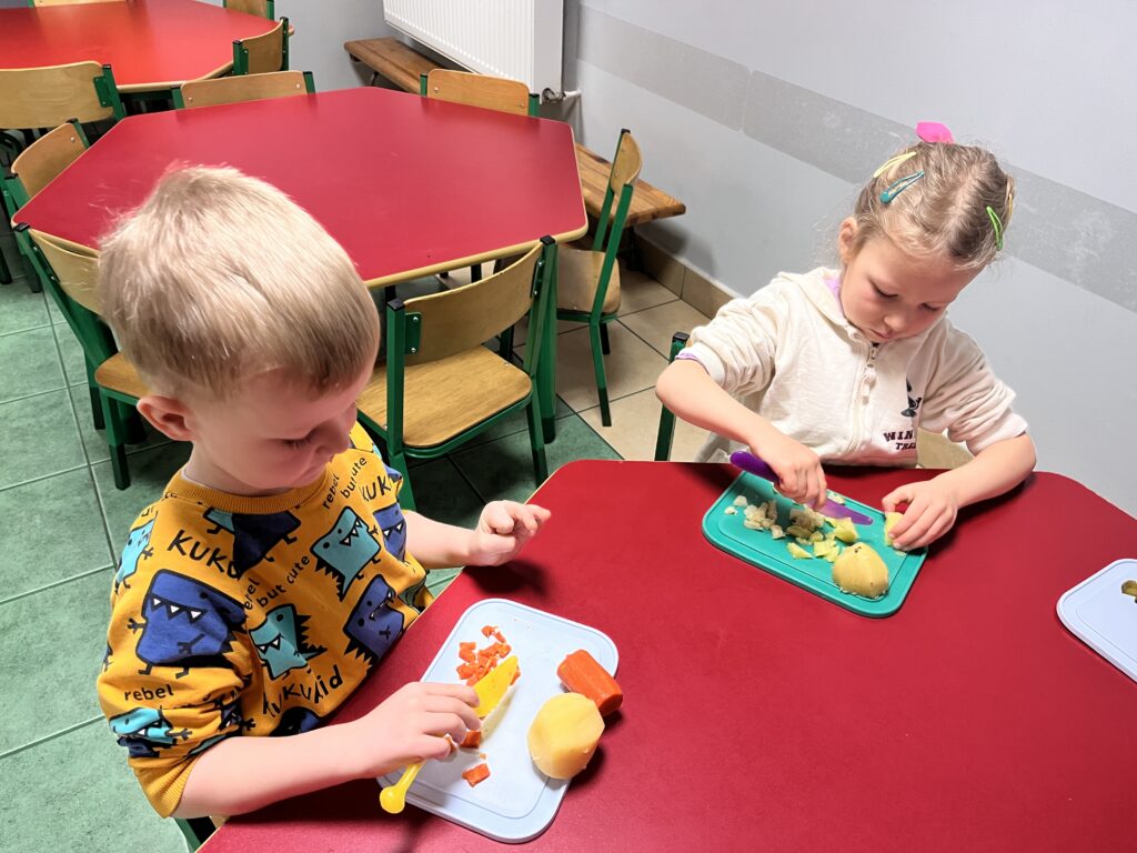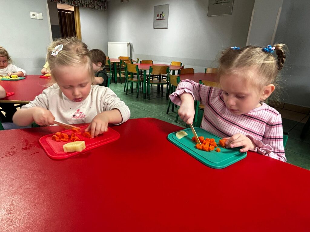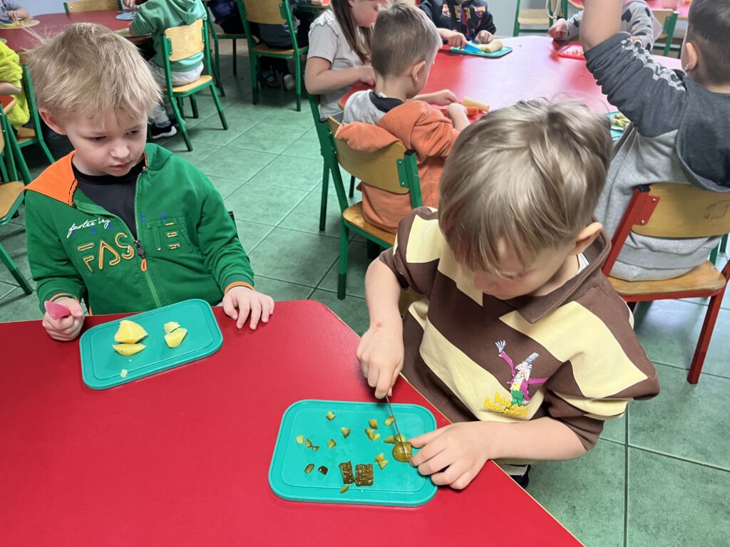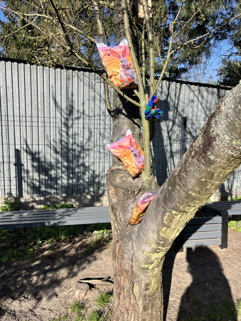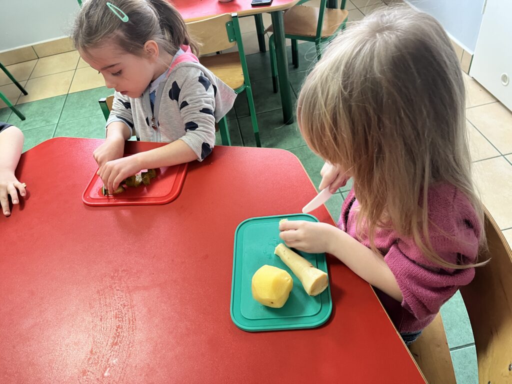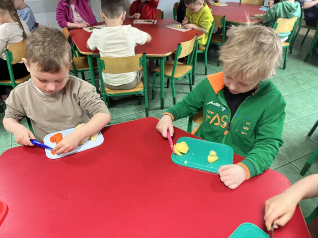 wczoraj przygotowaliśmy warzywa na sałatkę jarzynową, dziś zjedliśmy pyszne śniadanko, a następnie goniliśmy zajączka. Nie udało nam się go złapać, ale zostawił nam piękne prezenty.