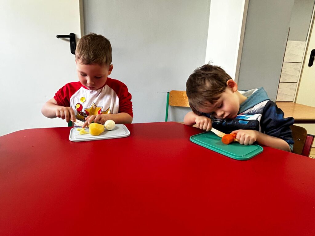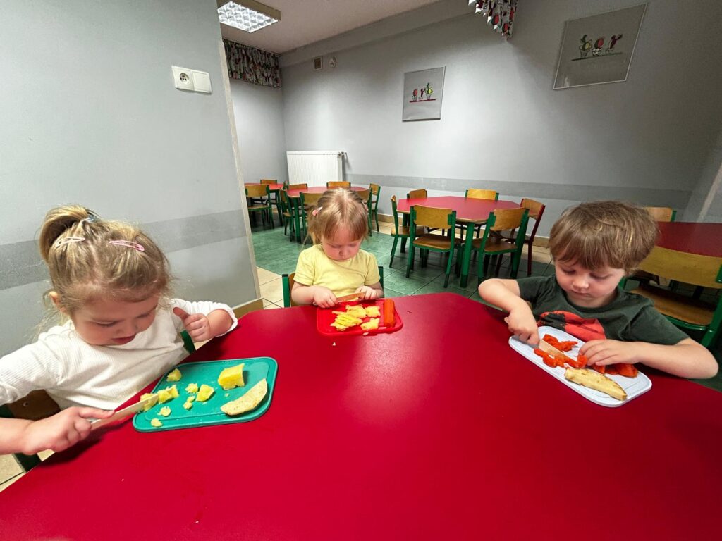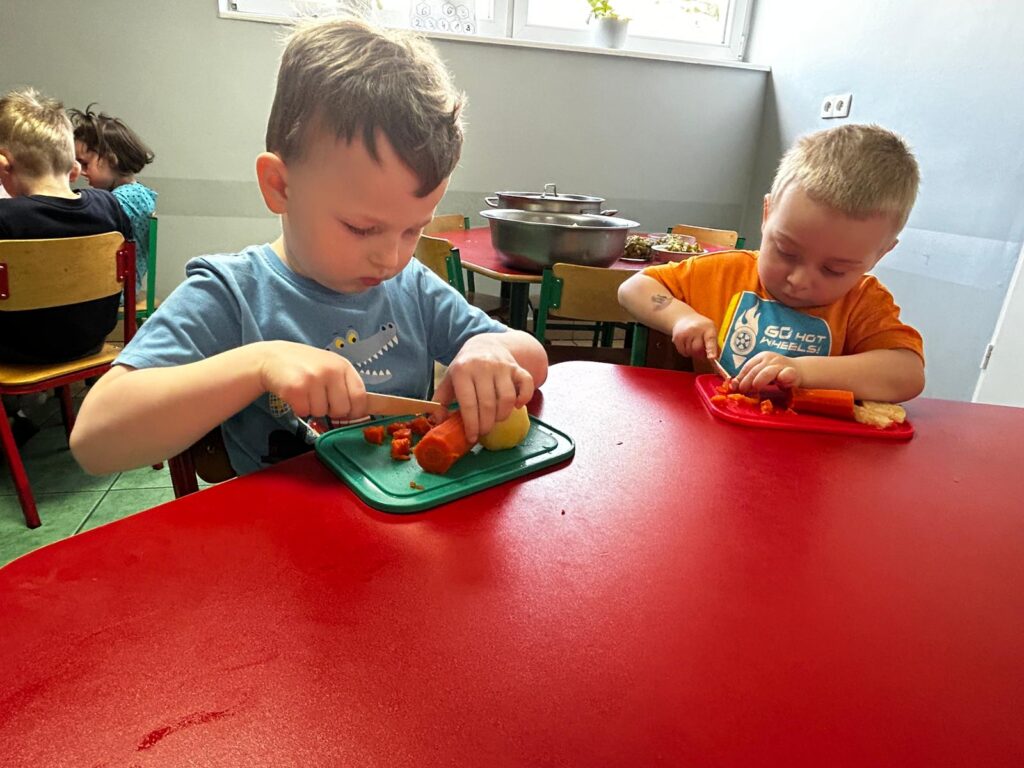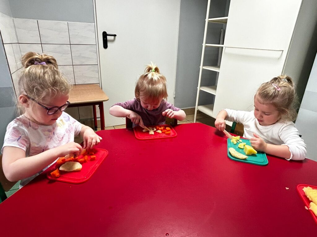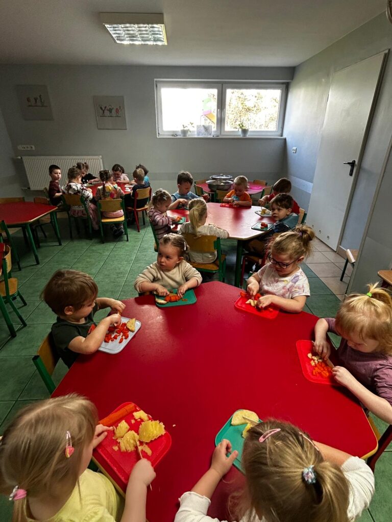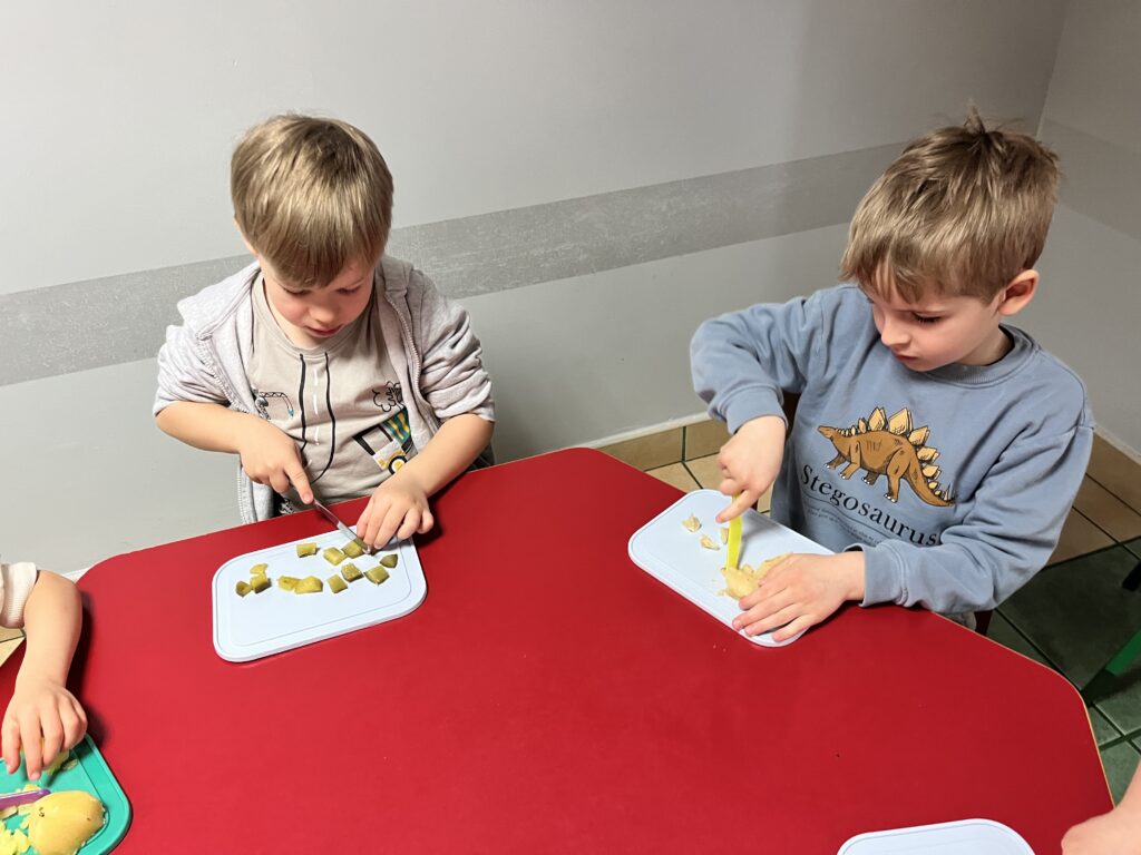 wczoraj przygotowaliśmy warzywa na sałatkę jarzynową, dziś zjedliśmy pyszne śniadanko, a następnie goniliśmy zajączka. Nie udało nam się go złapać, ale zostawił nam piękne prezenty.